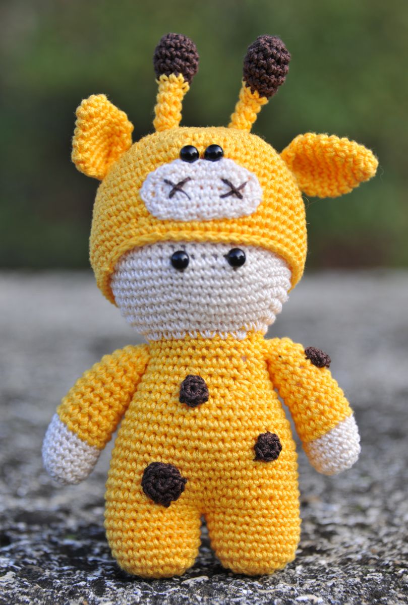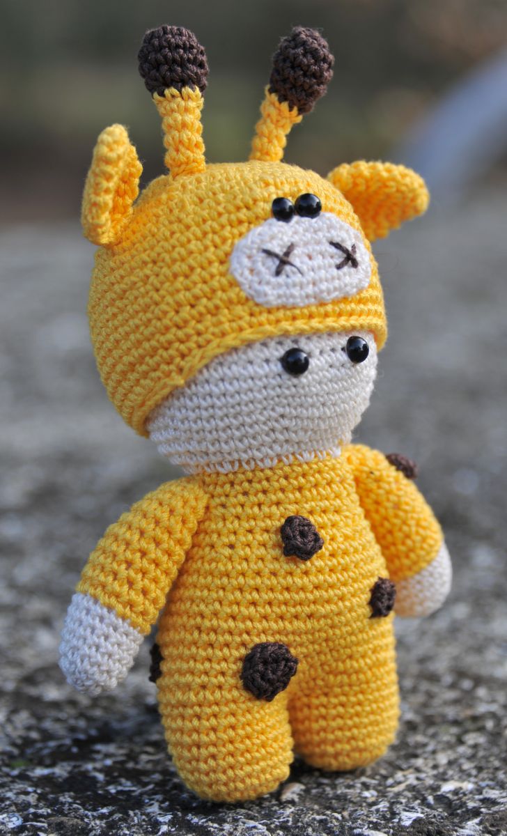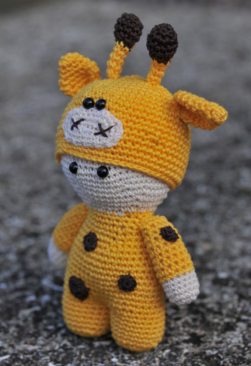 Amigurumi Bonhomme déguisé en girafe, au crochet.