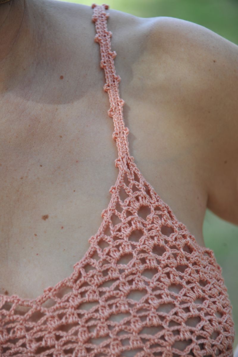 Débardeur au crochet fait main, couleur pêche