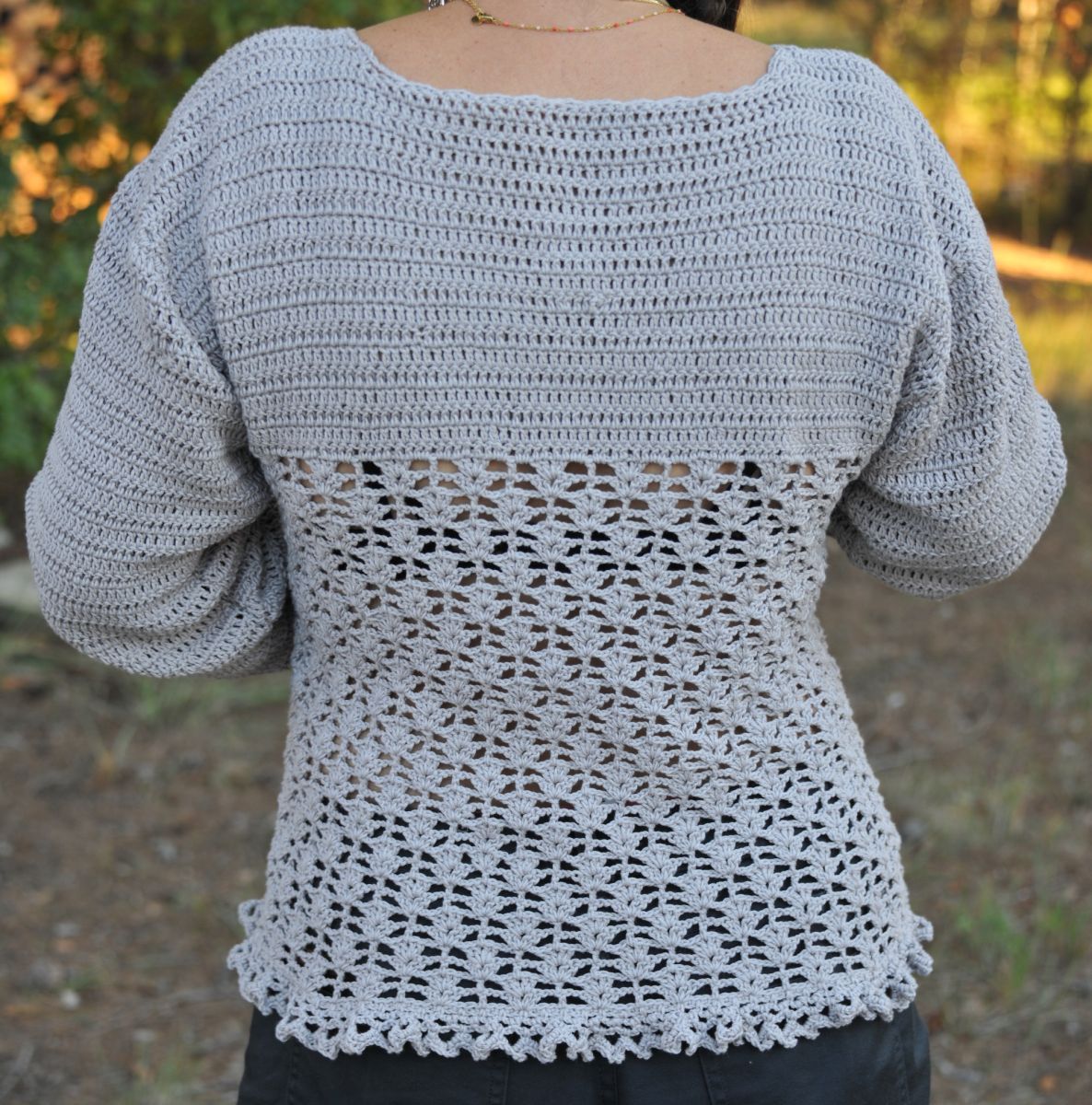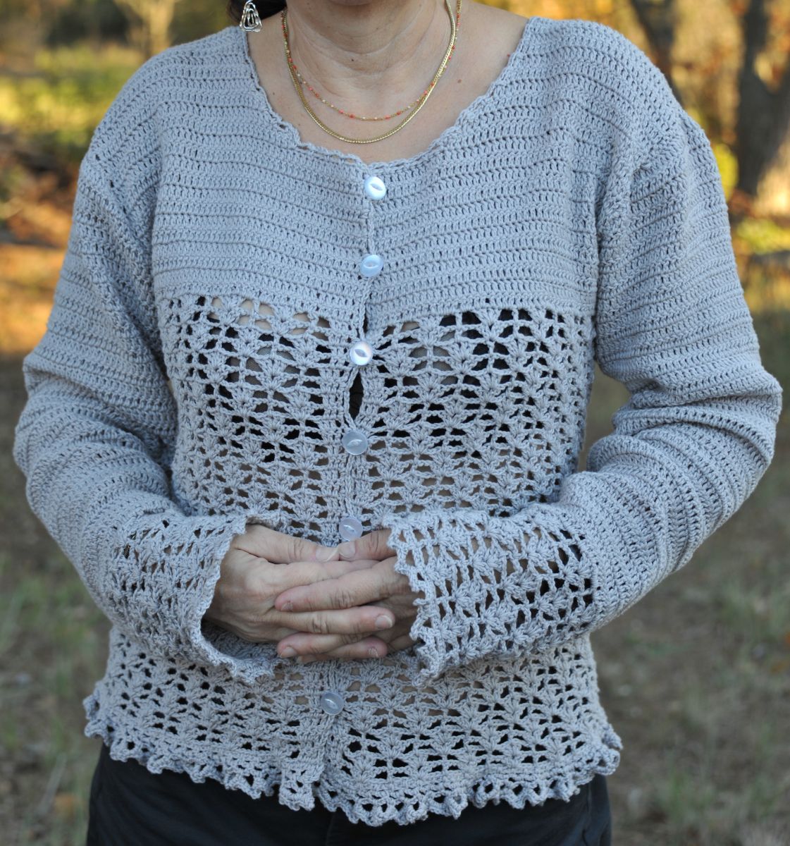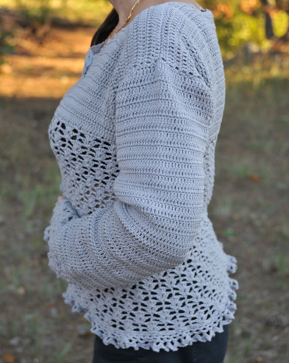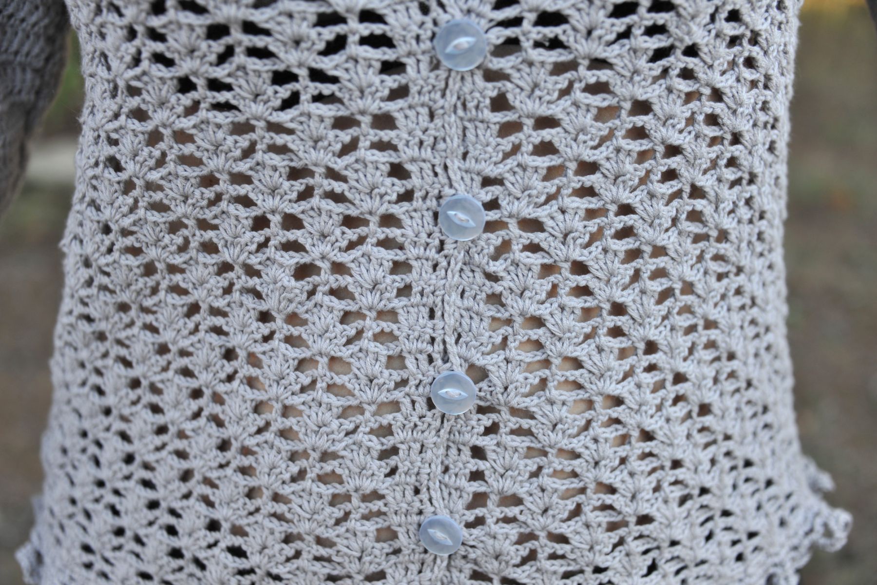Gilet au crochet dentelle fait main, couleur gris perle