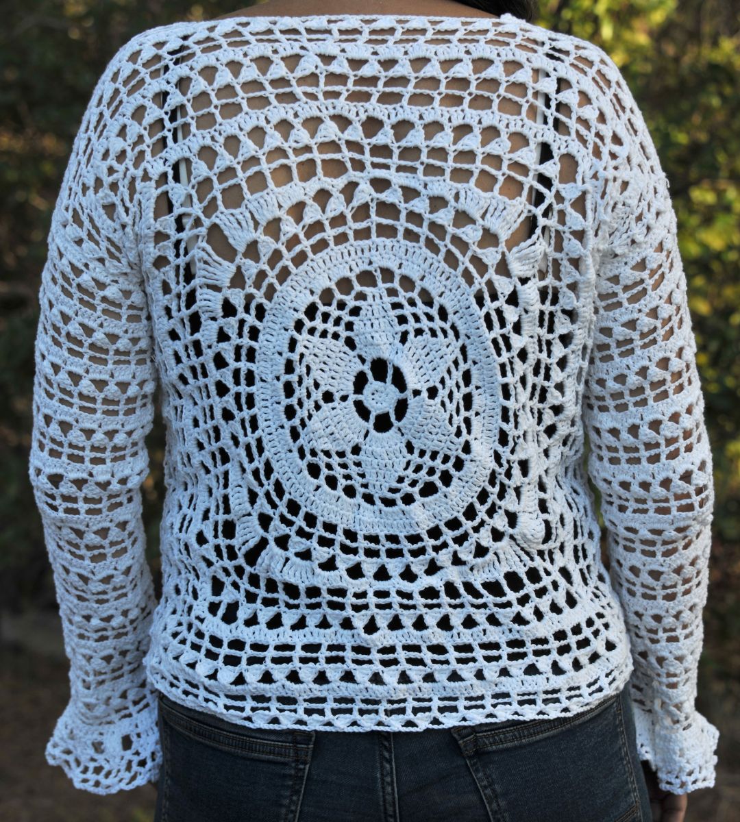 Pull ajouré au crochet dentelle fait main.