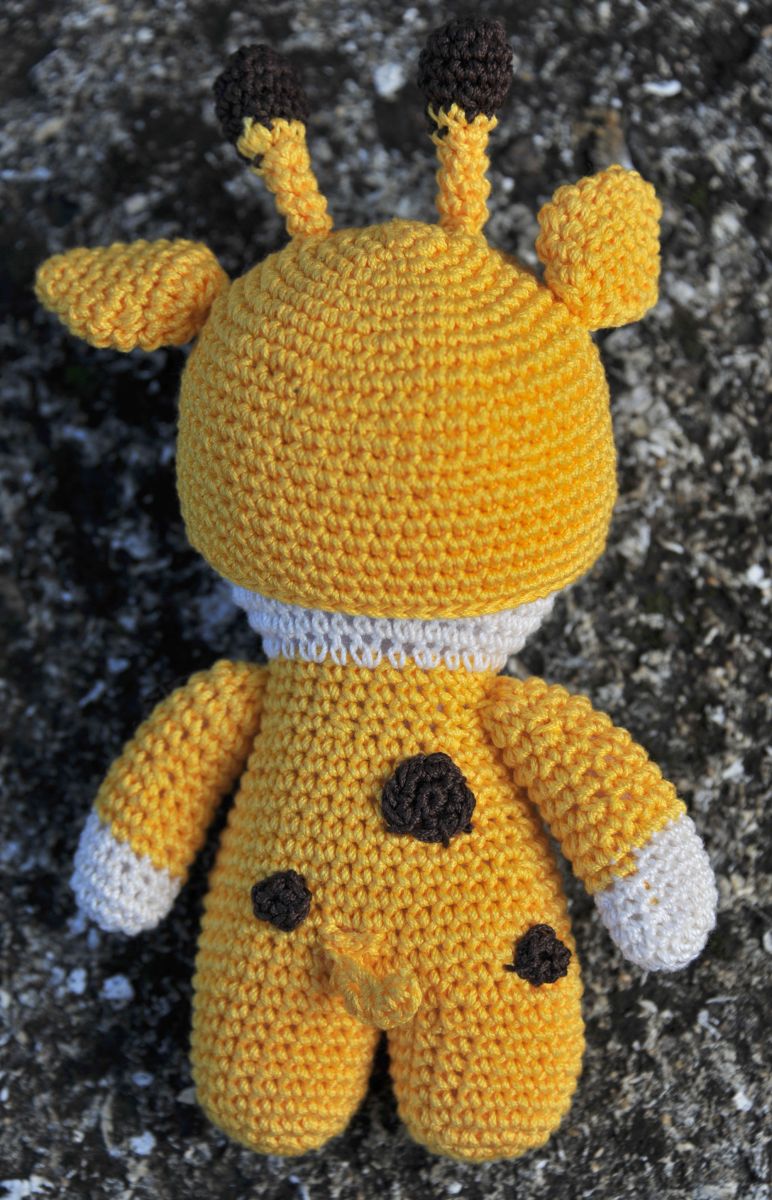 Amigurumi Bonhomme déguisé en girafe, au crochet.