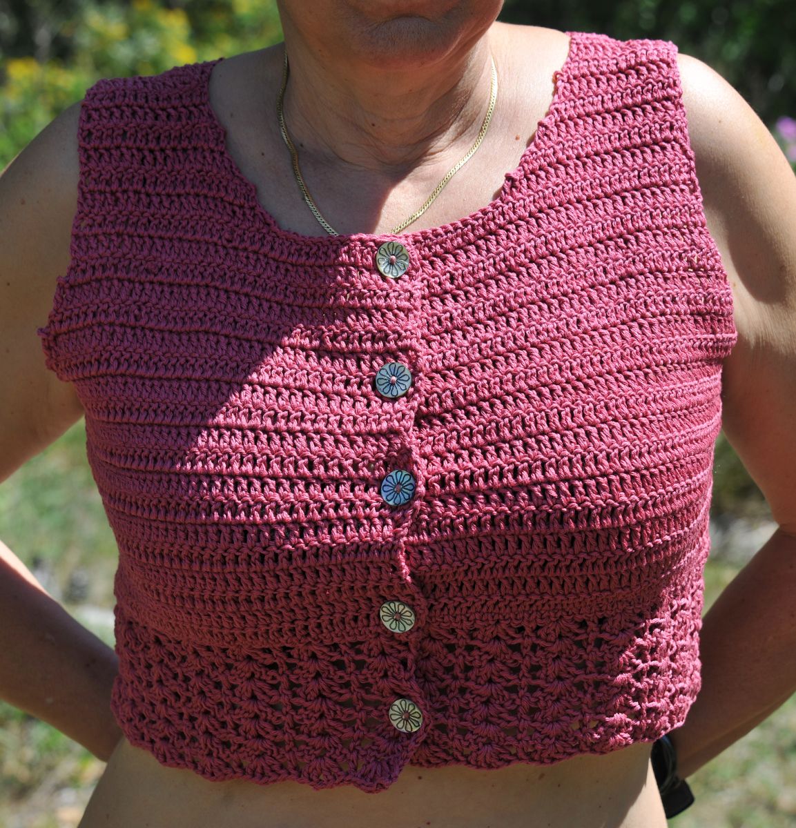 Crop top boutonné au crochet fait main