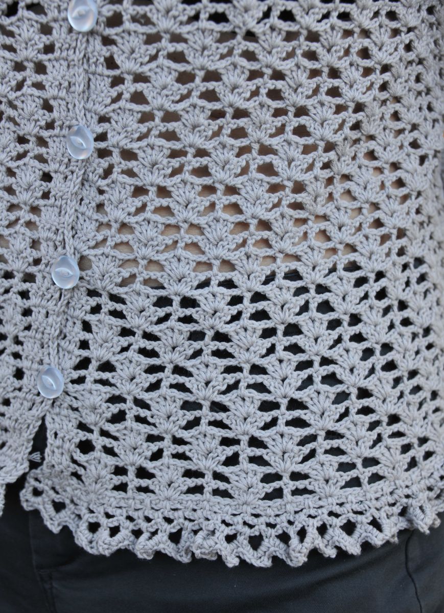 Gilet au crochet dentelle fait main, couleur gris perle