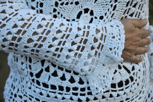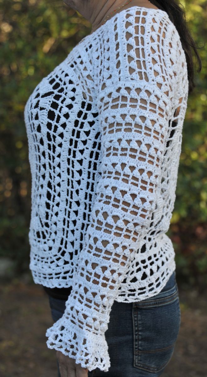 Pull ajouré au crochet dentelle fait main