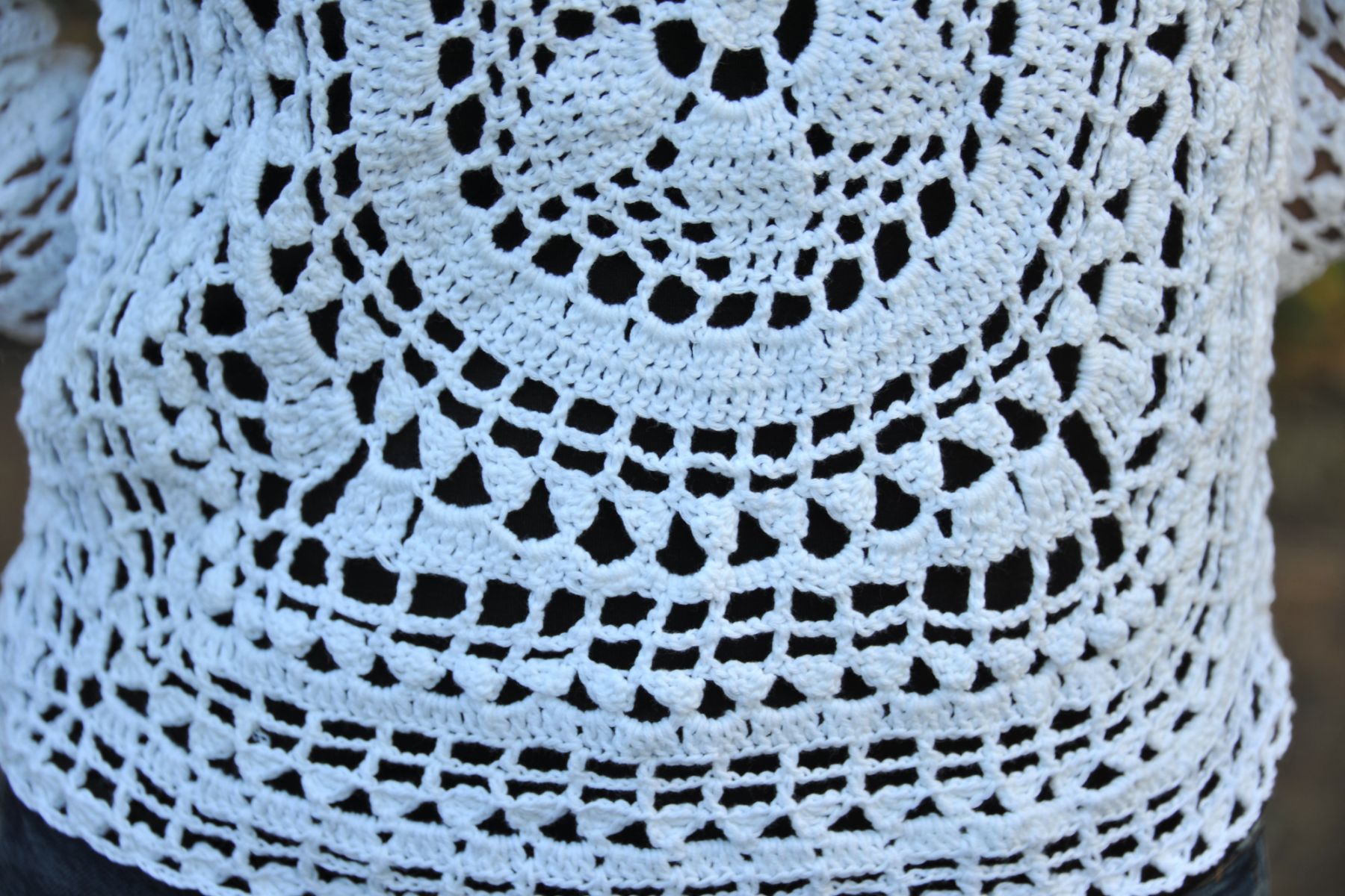Pull ajouré au crochet dentelle fait main.